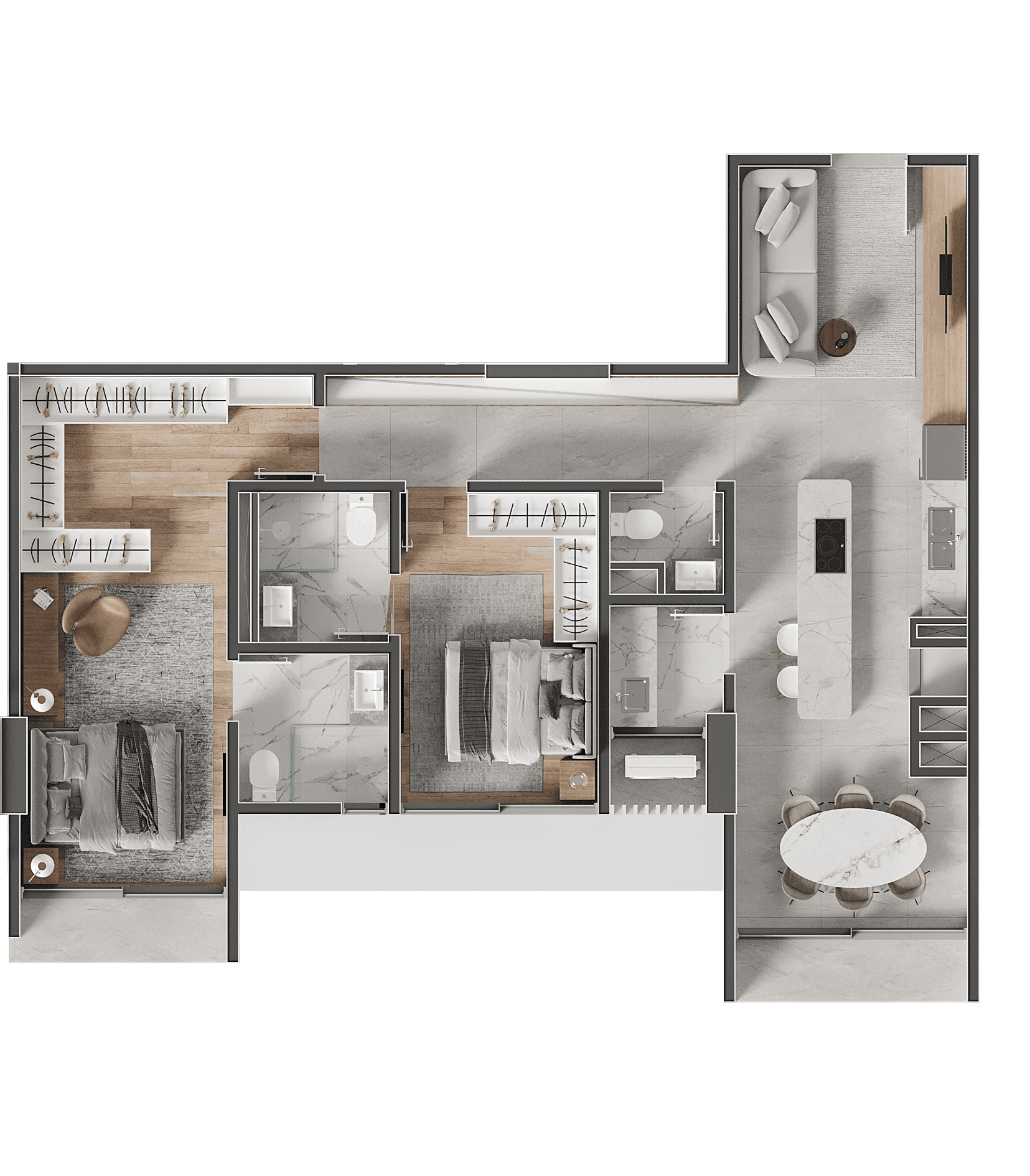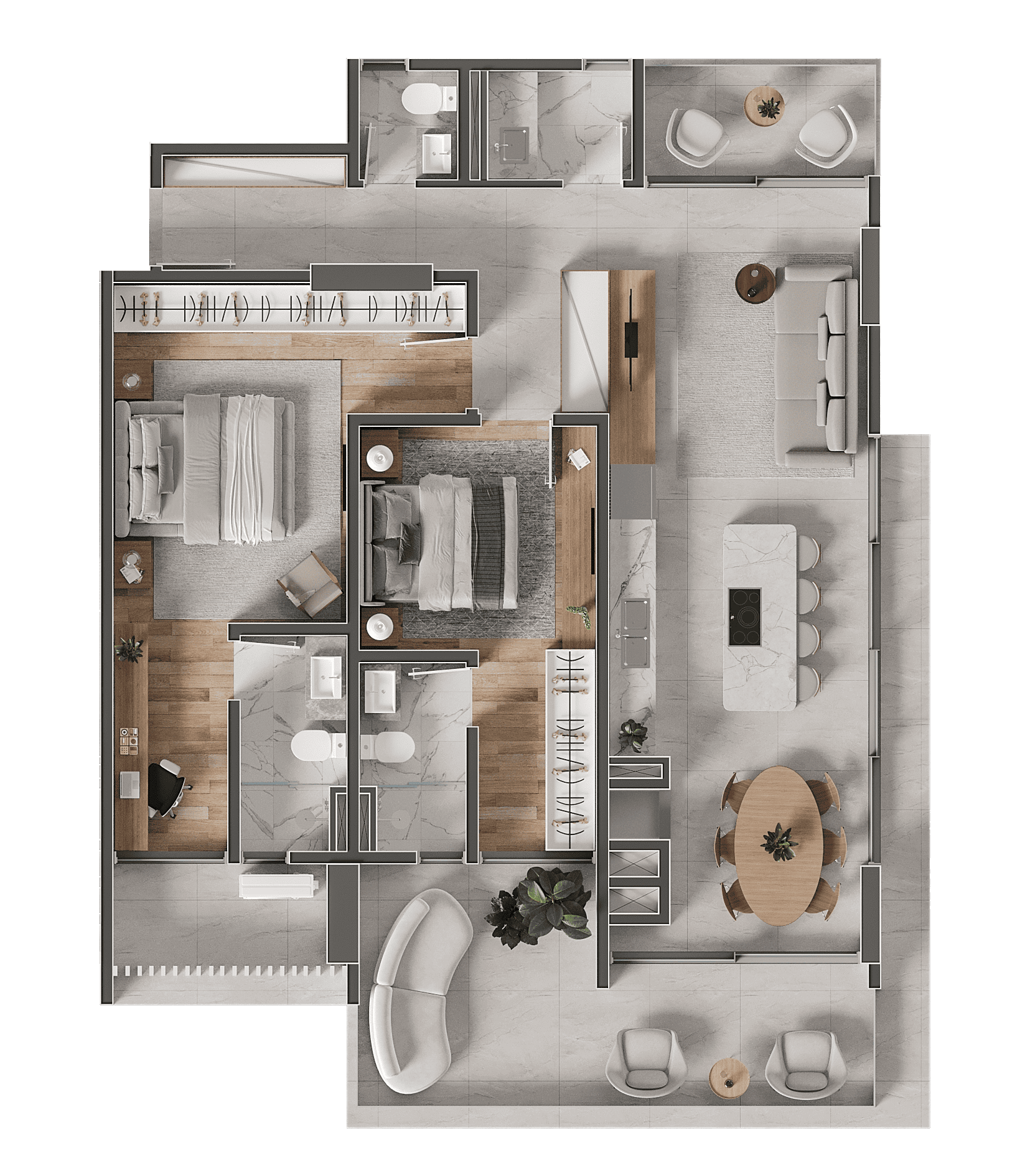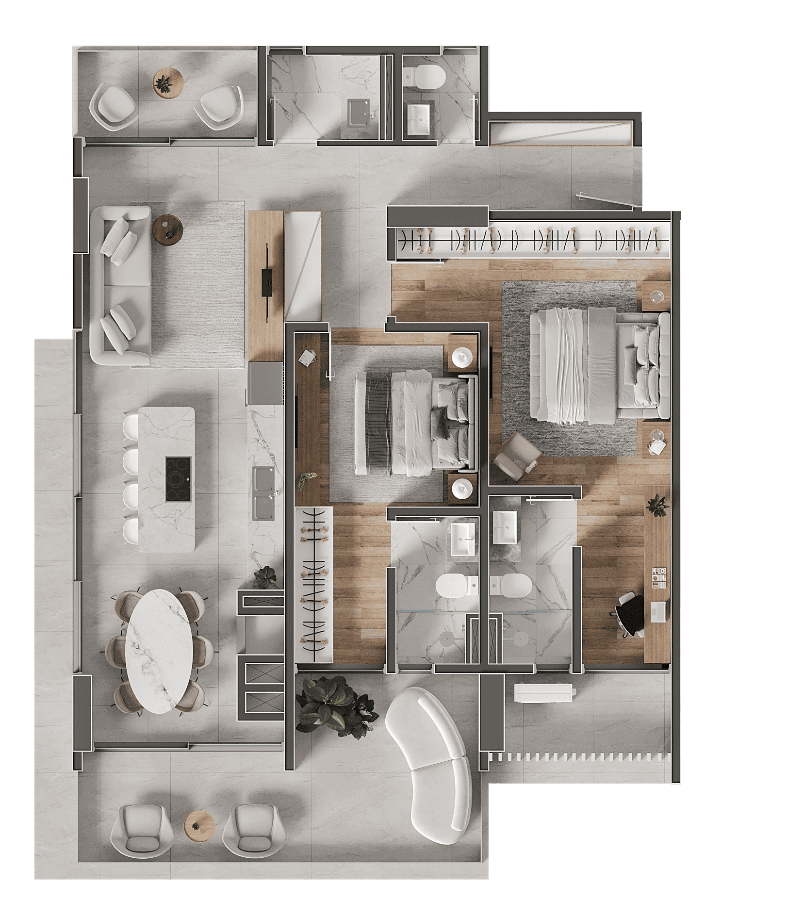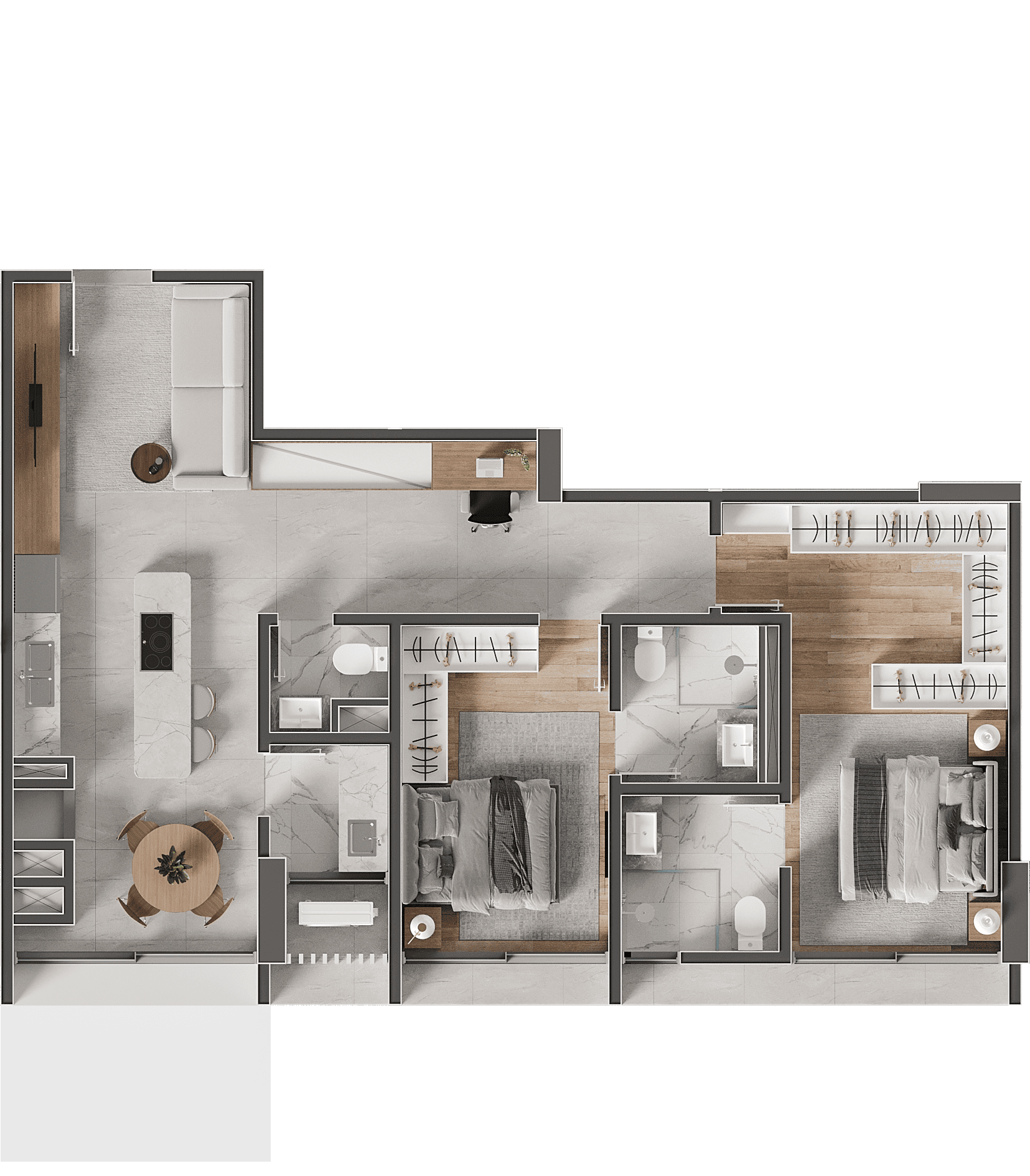 Viva a vida em plenitude nas áreas de convívio do Vivatto. Cada espaço foi cuidadosamente planejado para oferecer conforto, praticidade e diversão. São ambientes perfeitos para momentos em família ou com amigos, com a tranquilidade e a segurança que você busca em um empreendimento de alto padrão.